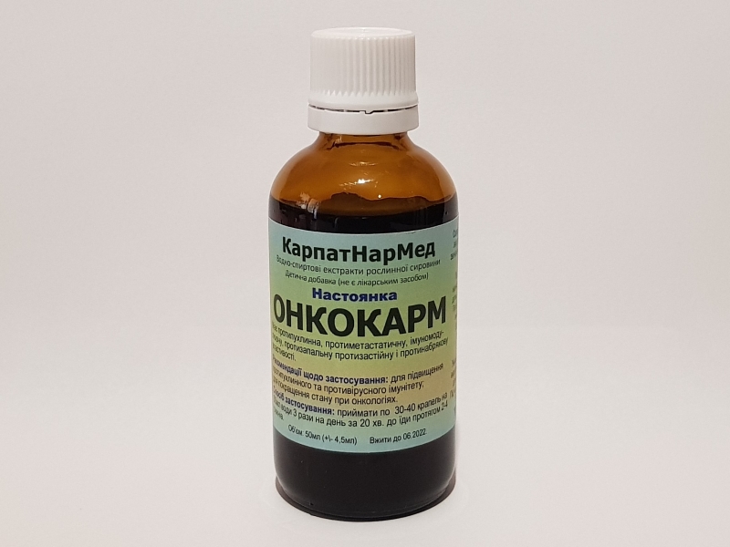 Hастоянка "ОНКОКАРМ" має протипухлинну, протиметастатичну, імуномодулюючу, протизапальну, протизастійну і протинабрякову властивості.